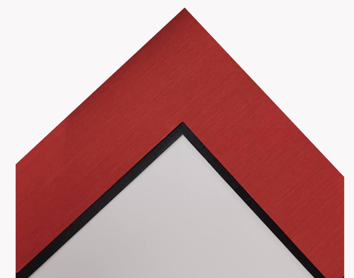 After the drum head has been secured and attached to the bottom black shiny mat, we started assembly. The drum head is approximately 3/4" tall, and with that being said, we needed to raise the top fabric mat to more of an even level with the drum. If we just laid the red matting on top of the black matting it would feel a bit flat. Keeping in mind every project is different and we all use our many years of framing experience and love of aesthetic to determine what is best on a project by project basis.