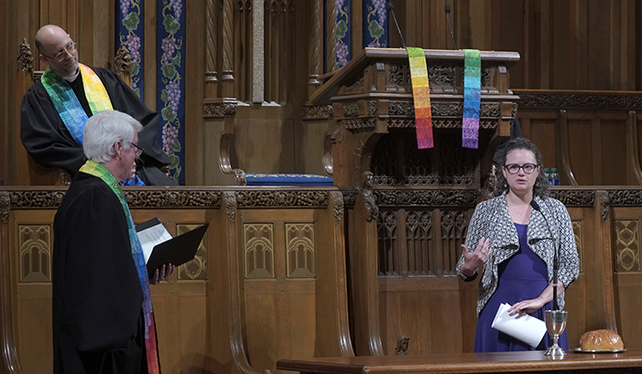 In Sunday’s Minute for Ministry, Marnie explained that she values joining Fourth Church in the Peace Walks with members of Saint Sabina Church because she enjoys “being in the Auburn Gresham neighborhood on a beautiful summer night, walking with people and connecting with them as they’re showing up for their community and making a difference.” | |