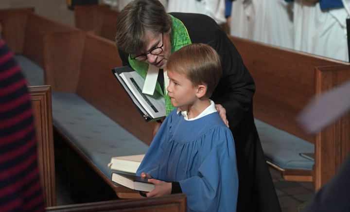 While children are always welcome in worship, on the second Sunday of each month we have the special treat of Sunday School youth taking a role in worship leadership as well, including serving as beadle during the procession and singing the Introit. | |