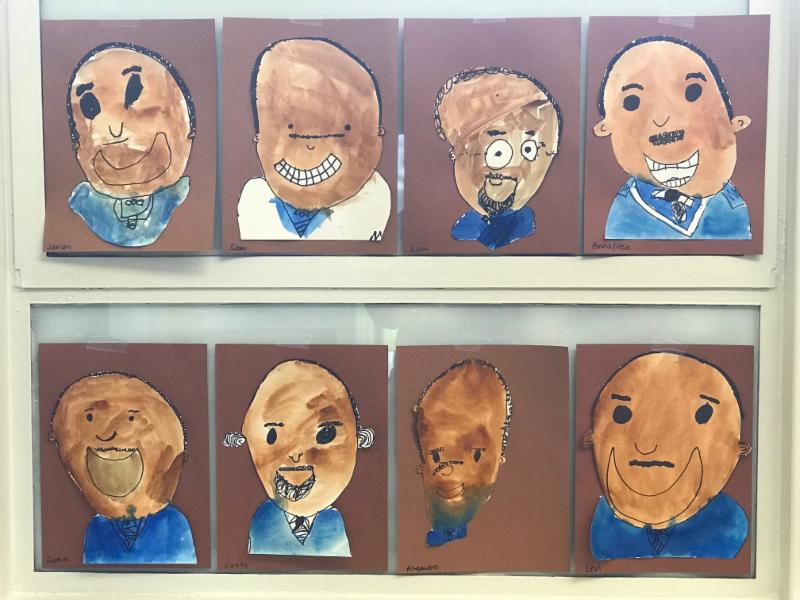 To honor Dr. King, students created portraits of the civil rights leader. Pictured above are some of the portraits by Mrs. Weeaks' kindergarten class.