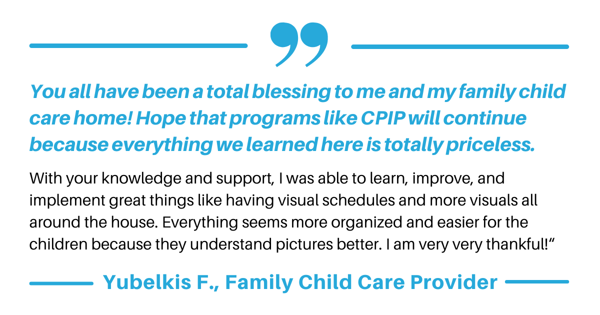 To celebrate the conclusion of CPIP, an event was held on June 22nd for family child care providers from all over the Alameda County to network and learn inclusion support strategies. They received children’s books, visual aids, and $500 in inclusion materials along with the opportunity to receive another $500 stipend for full participation in peer discussions and learning courses.