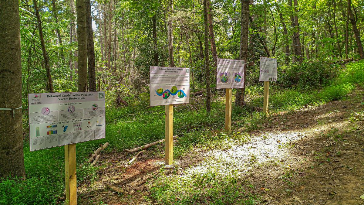Last month on the south side of the stream we opened two new trails, installed two benches, stream information signs, a lending library, and planted a Wildflower Meadow. This tranquil and peaceful location offers space for mindfulness, reading, and exploration. The Kiosk bench provides a great space for viewing train activity and the hike through a wooded trail from McIntire Park Skatepark is more vigorous and full of the sights and sounds that only nature can provide. Check out the hard work of our volunteers and our Landscape Manager, Patrick Morrissey!