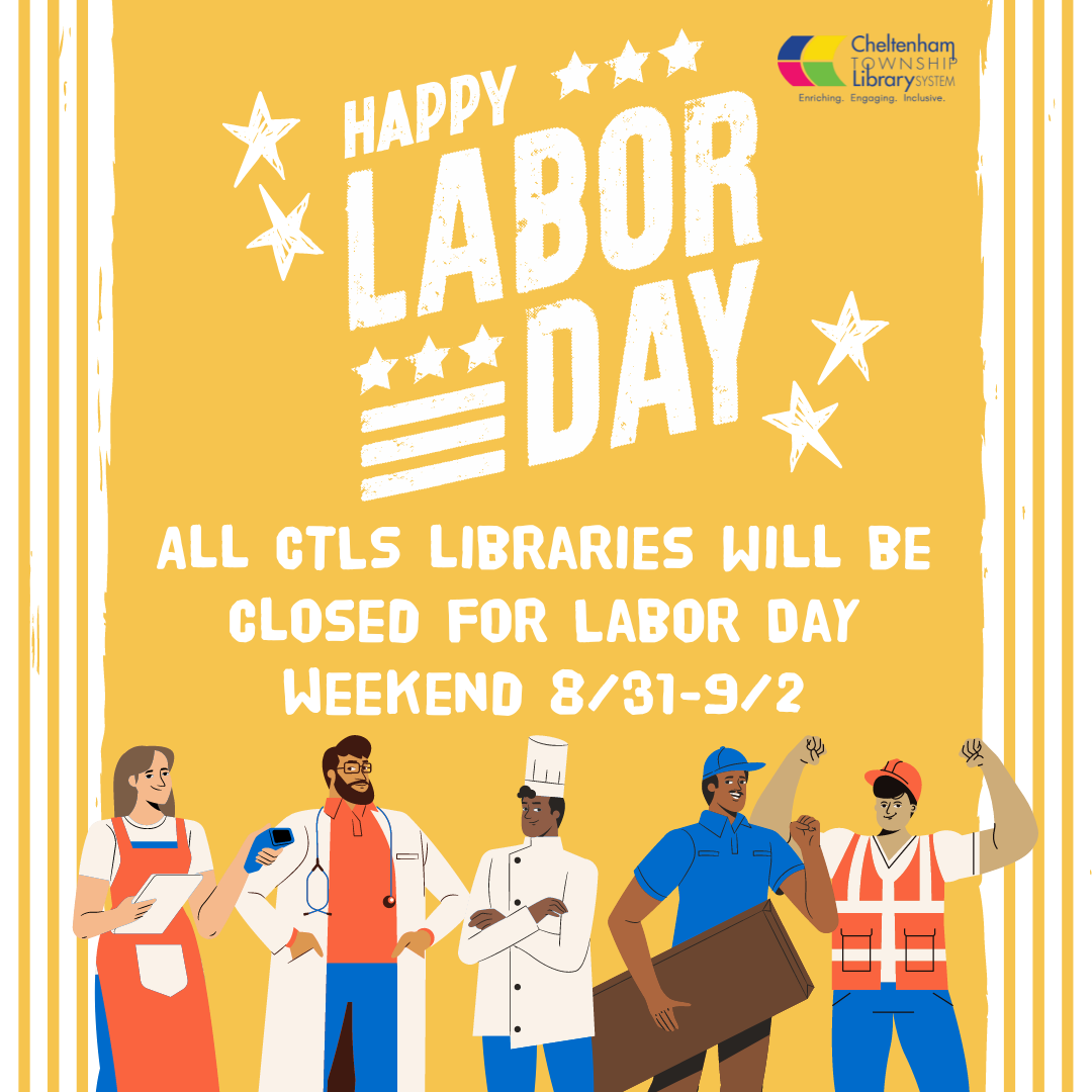 All CTLS library branches will be closed for Labor Day Weekend from Saturday, August 31 through Monday, September 2.