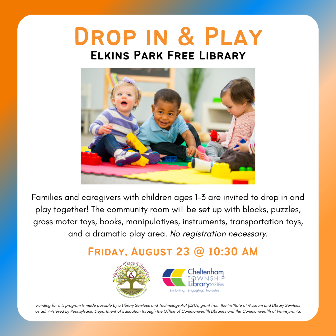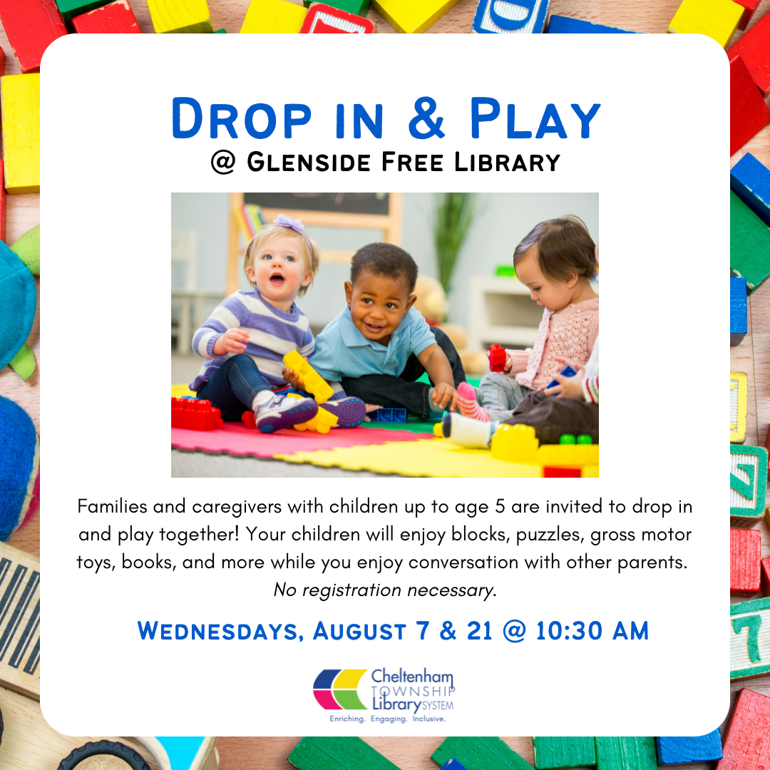 Families and caregivers with children up to age 5 are invited to drop in and play together! Your children will enjoy blocks, puzzles, gross motor toys, books, and more while you enjoy conversation with other parents. No registration necessary.
