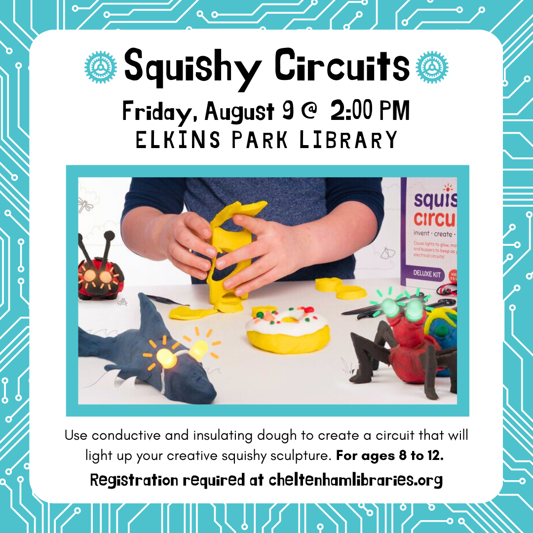 Use conductive and insulating dough to create a circuit that will light up your creative squishy sculpture. For ages 8 to 12. Registration required.