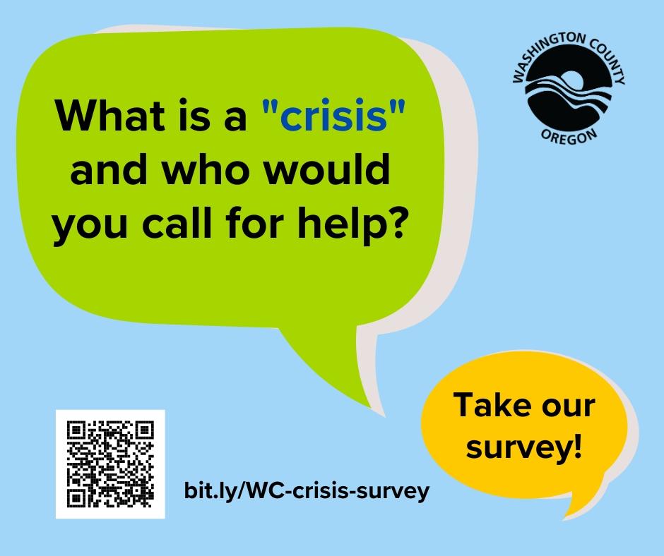What is a “crisis”? Who would you contact if you needed help? Have you heard of or called the Washington County Crisis Line? Take our quick and anonymous survey by September 20 to help us reach more people in need of behavioral health services. You can enter for a chance to win one of five $50 gift cards after you’ve completed the survey. https://bit.ly/WC-crisis-survey