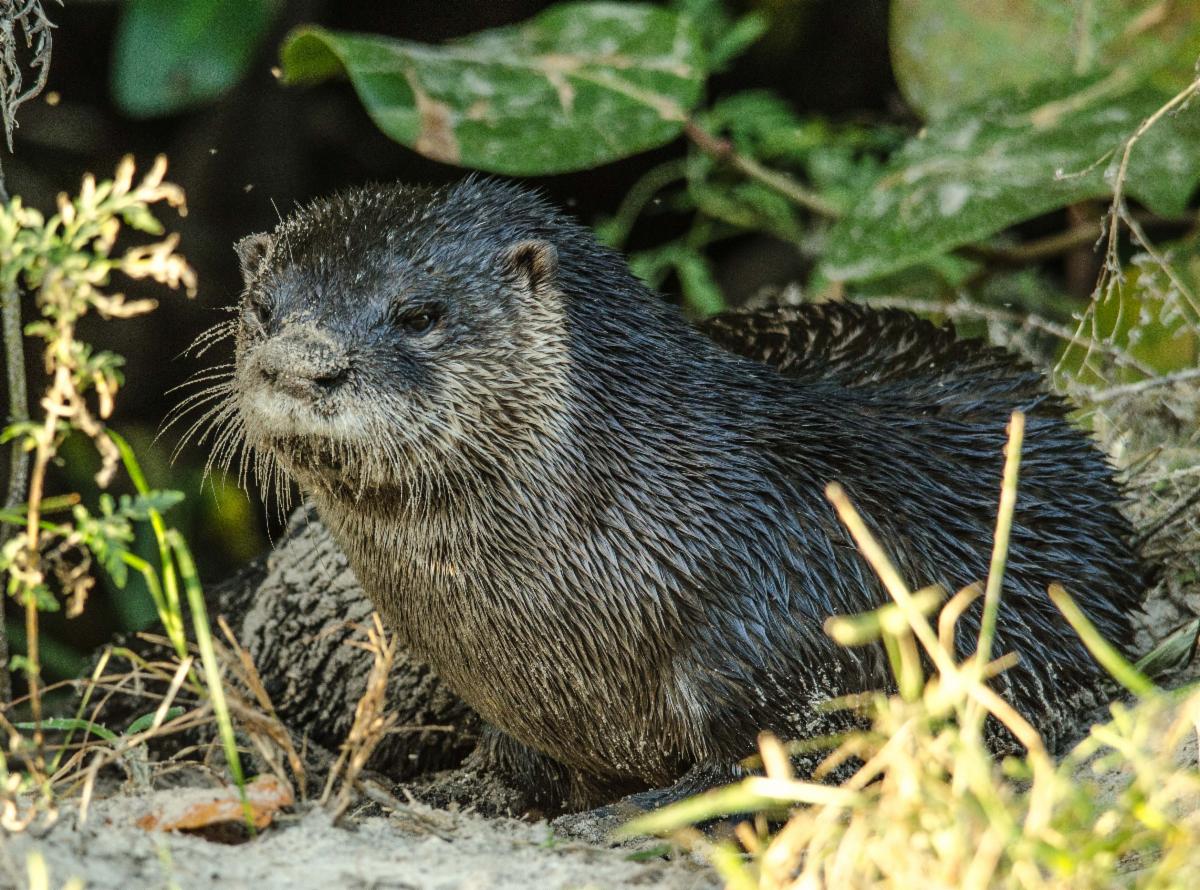 River Otters have been seen on Indigo Trail. They communicate with whistles, yelps, growls, and screams, as well as touch and body posture. They also scent mark using glands near the base of their tails that produce a strong, musky odor. Adults generally give birth to between one and three pups, which are blind and helpless when born. They first learn to swim after about two months. River otters generally live alone or in small social groups.