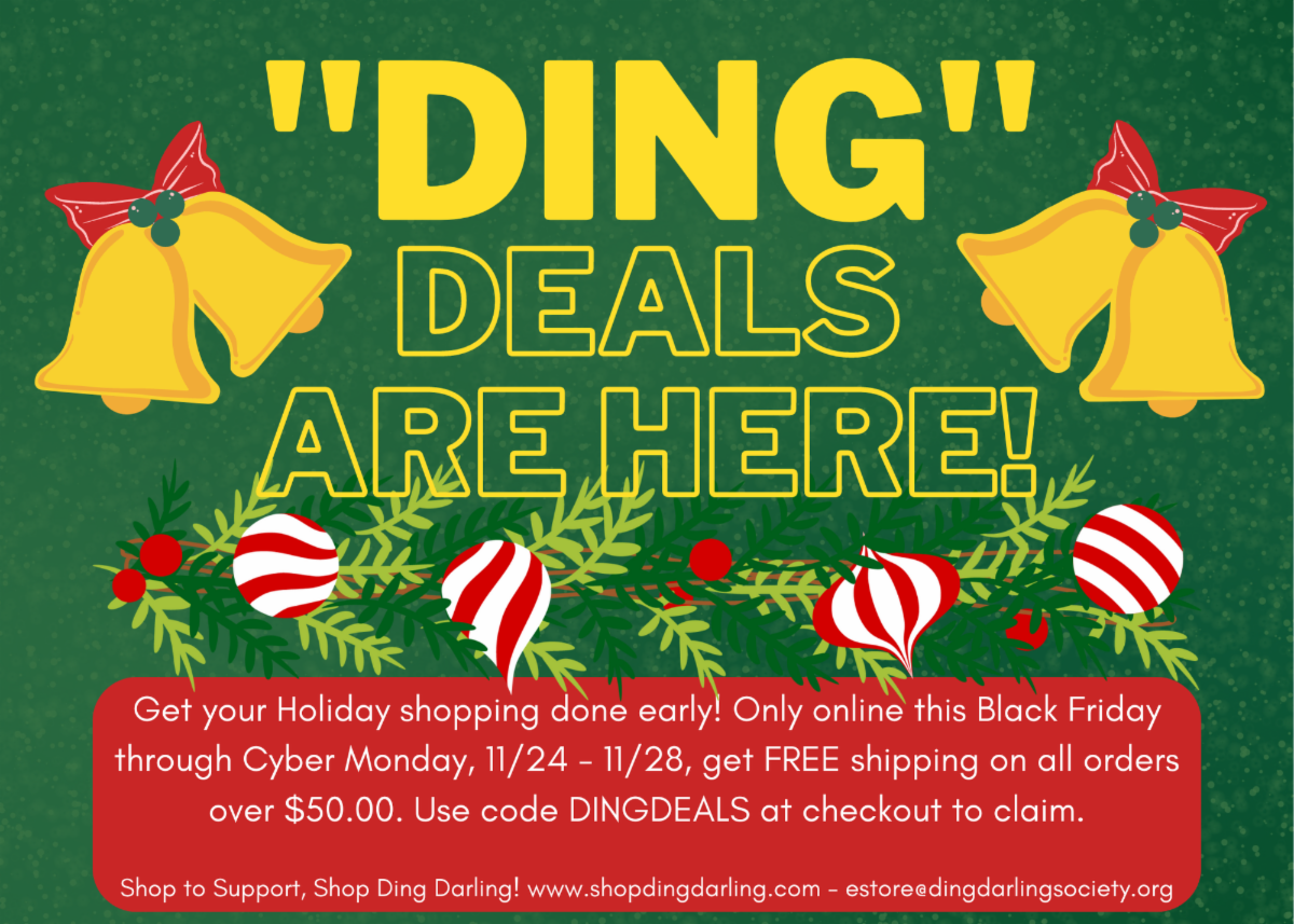 Come join Refuge and DDWS staff for their Jolly Holiday Pop-up Store at Bell Tower shopping center in Fort Myers on Friday, December 2. “Ding” Darling joins the SanCap Chamber of Commerce and relocated island businesses for a relocated Holiday Luminary as part of Bell Tower’s FREE Tree Lighting Extravaganza from 6 to 8 p.m. The Refuge Nature Store will be selling specialty gift items and hosting special guest artist Rachel Pierce and live music that evening. Families can enjoy Santa’s arrival by fire engine, a bounce house, holiday games, face painting, food, and other surprises. Watch our social media pages and next week’s “Ding” on the Wing for more details.