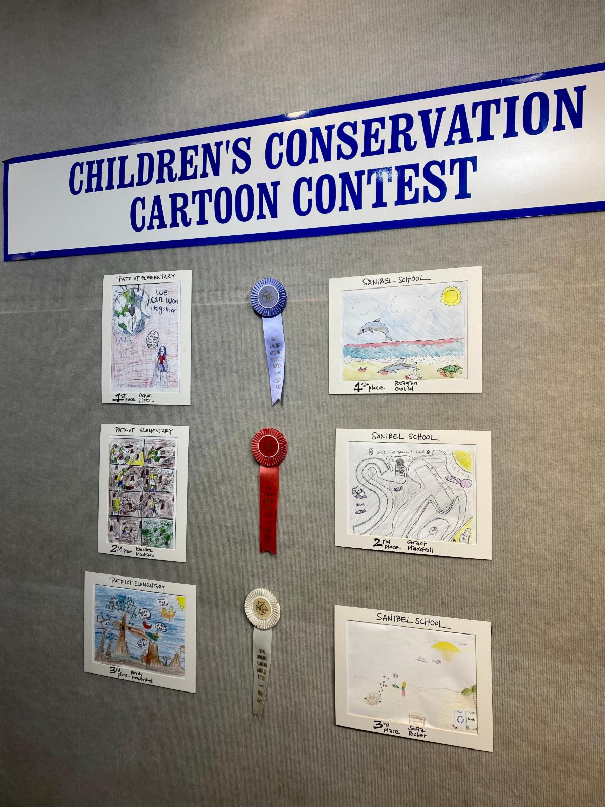 Annual environmental cartoon contests are a “Ding” Darling tradition in local elementary schools, honoring the legacy of the Refuge’s namesake, a Pulitzer-winning editorial cartoonist of the early 20th century. This year’s hurricane interference decreased the number of schools, but not the quality of entries. Patriot Elementary in Cape Coral and The Sanibel School participated. A hurricane miracle story, The Sanibel School entries survived the hurricane and the school’s closing for more than four months. Staff discovered them unharmed when the school reopened in February. Congratulations to winners and all participants.