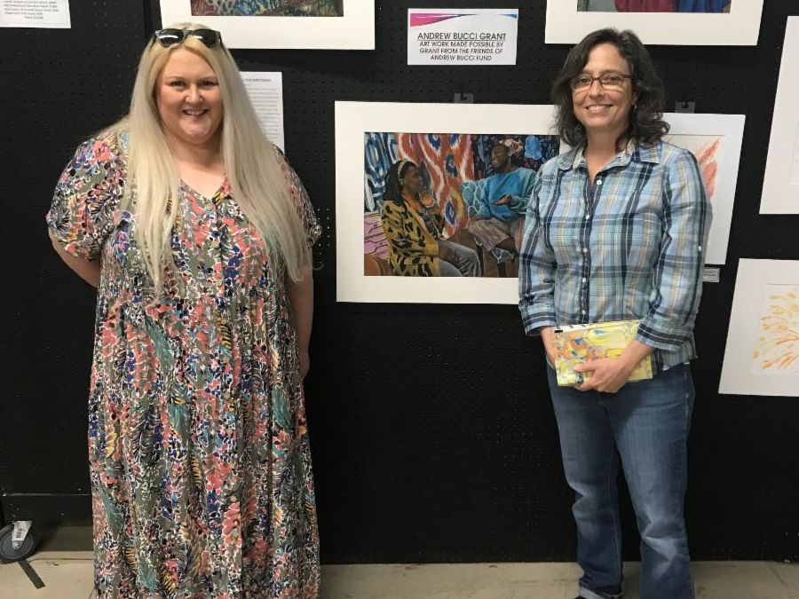 Bucci Art Supply Grantee Renna Moore-Edwards of Wells APAC (left) stands with Margaret Bucci (right) during their art show, which included works inspired by Andrew Bucci and supported by a 2022 grant. | |