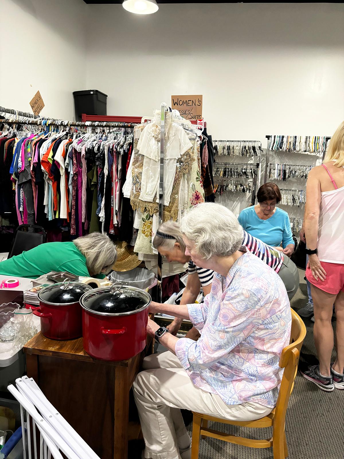 Welcome to the Pennywise Back Room, often referred to as the “Heart of the Shop.” Volunteers come together every day to sort and price donated items. Volunteers also decorate the shop and skillfully place housewares and decor items throughout. We are always looking for volunteers to help, especially on Monday when we get ready for a new week. If you like to decorate, organize, and in general have fun with a great group of women and men please reach out to the Monday Chair, Jeanna Spielmann.