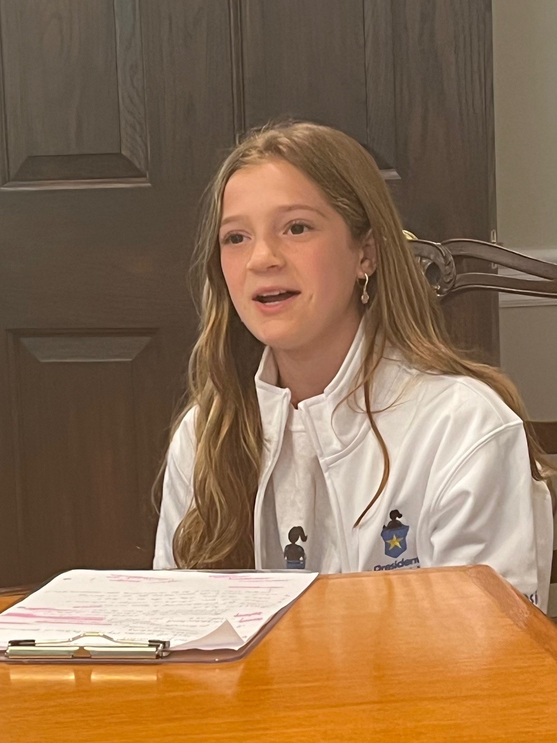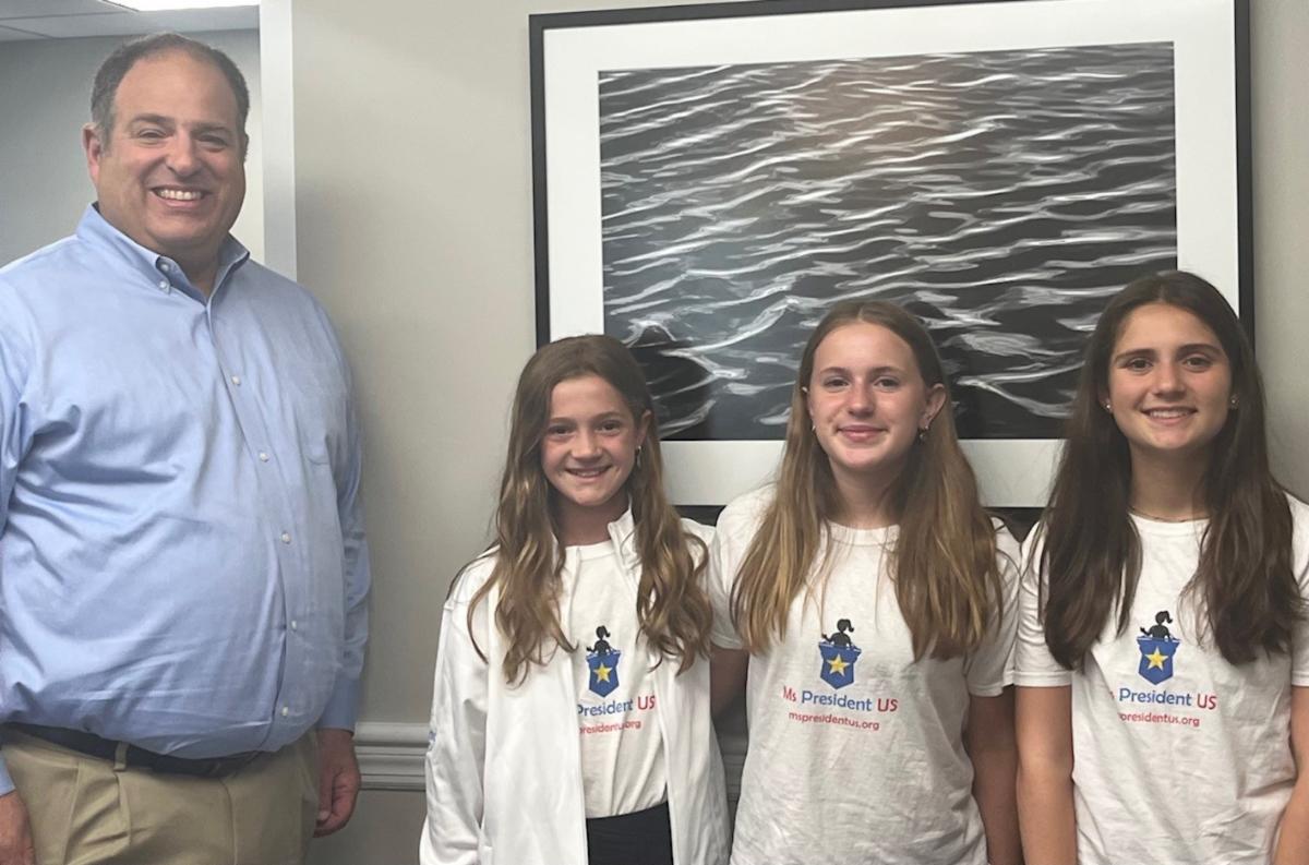 Avery Holtz ran for and was elected Ms President US of Fairfield by participating in a girls' civic leadership program for girls in 4th to 8th grades. With the goal of expanding their knowledge of what it takes to be a leader, the Ms President US program builds upon a girl's belief that they can do anything anyone else can do. Avery's platform this year focused on internet safety and protections for children online. A sixth grader at the Unquowa School, Avery visited the First Selectman's Office with two members of her campaign staff, Emily Smith and Ellie Holtz. Congratulations, Avery!