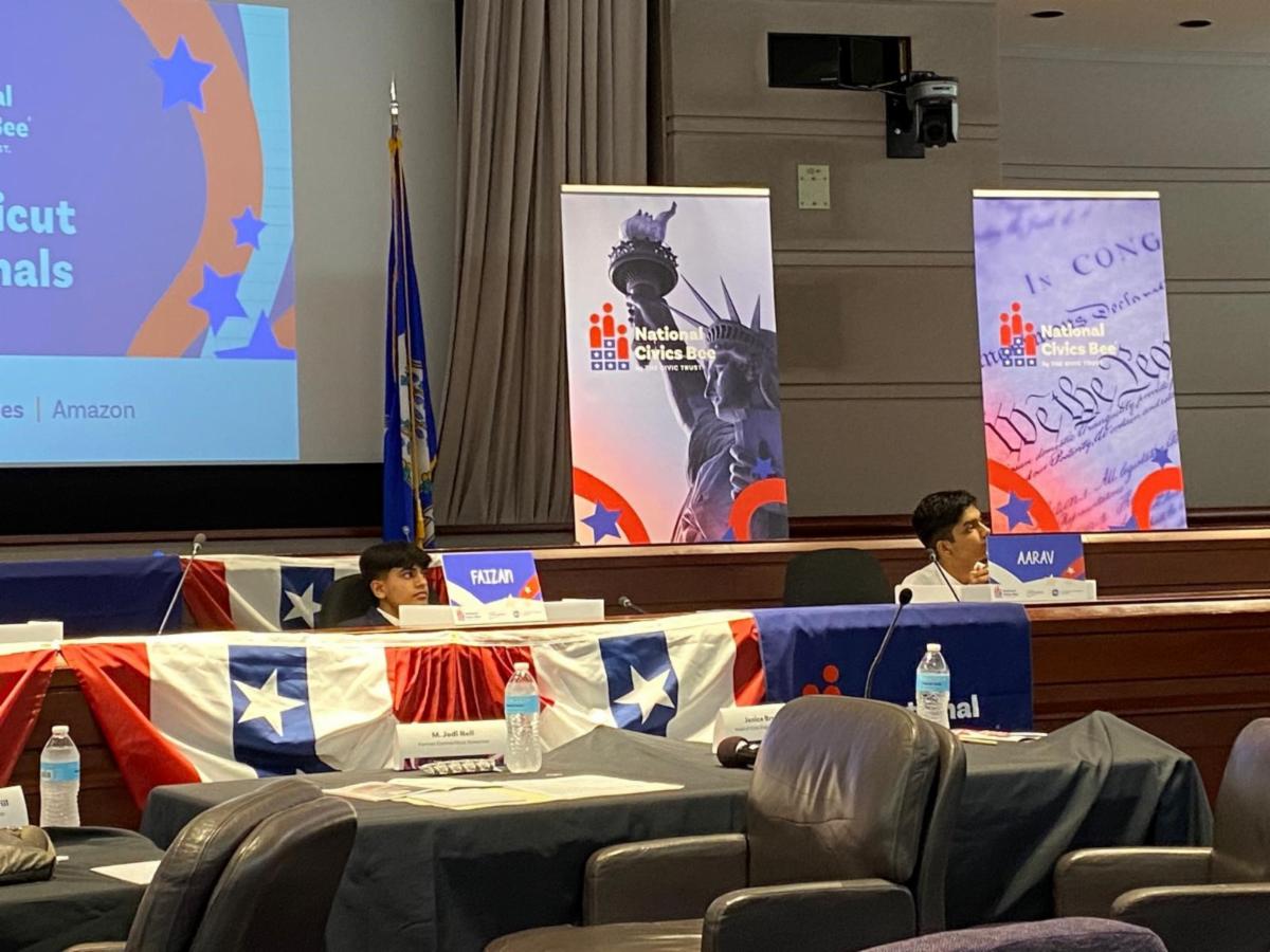 Tomlinson Middle School student Faizan Seyal took first place in the CT State Civic Bee Finals, with Tomlinson Middle School student Aarav Sahu in second place. They reached the state finals after submitting essays and competing in regional Civics Bees. Now Faizan heads to the National Finals. Congratulations to Faizan and Aarav!