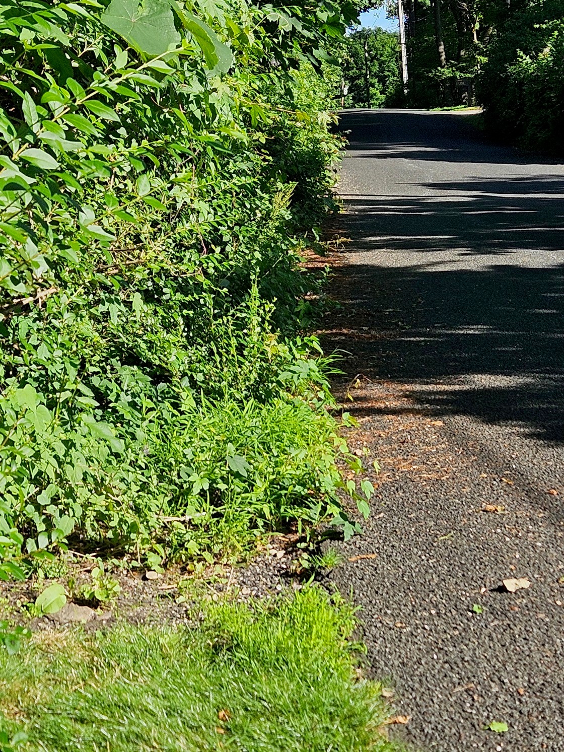 This photo shows vegetation encroaching on the roadway by about 12",