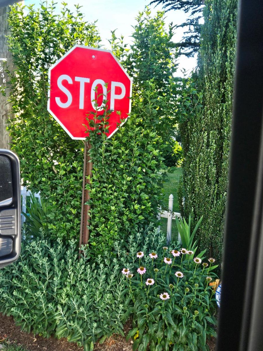 | | The stop sign above has two issues. There are plantings in the Right of Way that impede visual recognition approaching it and drivers looking right cannot see if the roadway is clear to proceed. Instead, they end up pulling forward and are at risk of getting hit from traffic in the other direction. | |