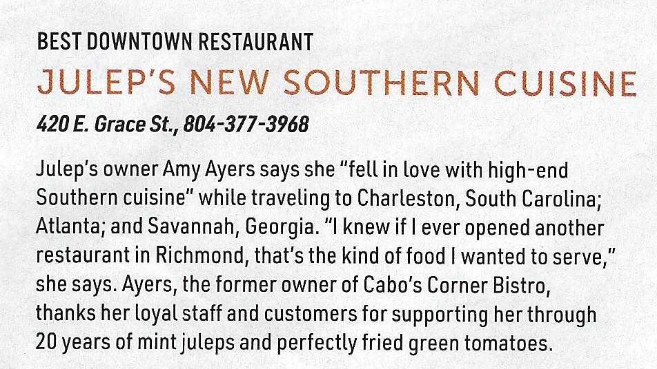 Julep's New Southern Cuisine | 804-377-3968 | 420 East Grace Street, RVA 23219 | juleps.net