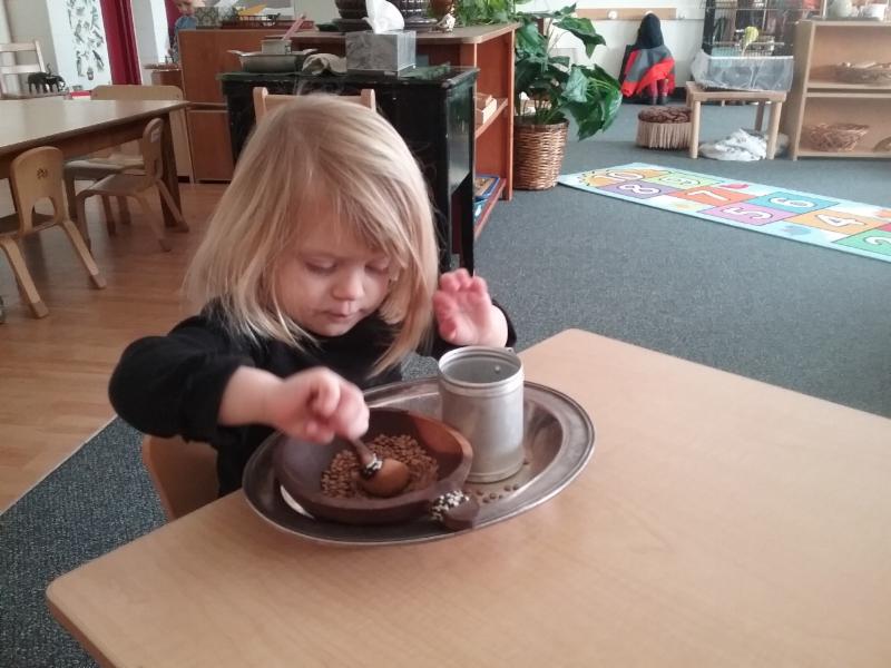 In math, students continue to work across all operations. Materials of interest are the tens board, fraction insets, bead chain for squaring numbers, money work, constructive triangles, and graphing. Some first years have been introduced to pictographs and created their own graph by taking a poll of favorite pets, holidays, ice cream flavors, etc. This has reignited student interest in graphing as well! Another point of interest has been the geometry cabinet. Where students label a variety of geometric shapes and create a book or chart.