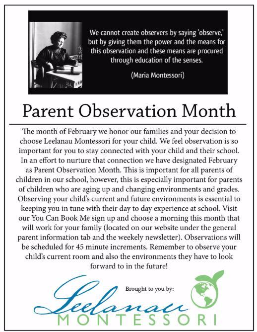 If you have any friends or family that may be interested in Leelanau Montessori for their children, please have them contact the office to schedule a tour and observation. Word of mouth is our best advertisement! Thank you.