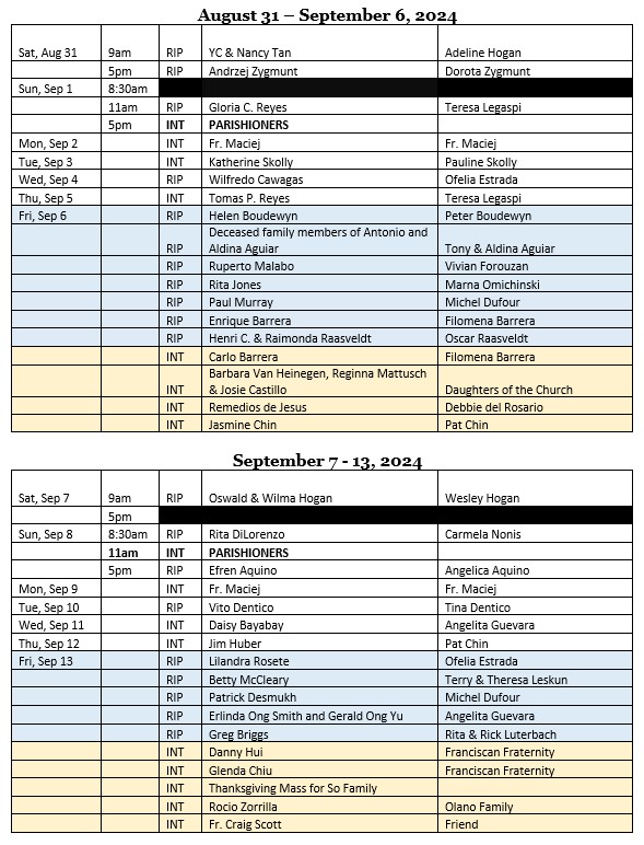 We are able to accept multiple Mass intentions on Fridays. For all other days, we can book one intention only. | |