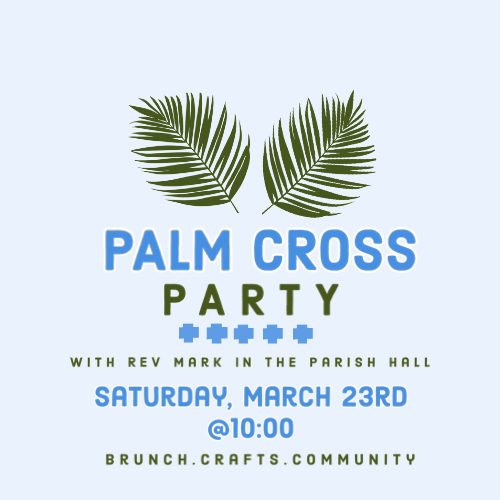 This is a new offering this year to prepare our hearts, and the church, for Holy Week. Please join Rev. Mark for a brunch and all things Palms in the Parish Hall.