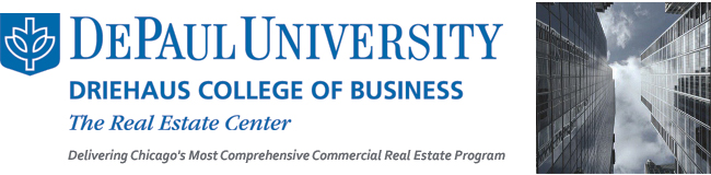 Peter Caruso, Senior Vice President of Jones Lang LaSalle and a DePaul alum presented a case study opportunity for the class - a unique redevelopment site at the corner of Ogden and Roosevelt in the prime Chicago medical district, a 560-acre designated district which features four world-renowned hospitals and two universities. Located less than three miles from Chicago's Central Business District, this redevelopment site is a prime candidate for retail and/or medical use with convenient drive-through access. He provided valuable insights on careers in real estate, establishing long term relationships with landlords, tenants and brokers and explained the lease-up and development process.