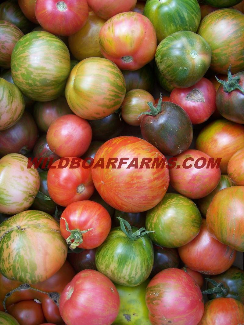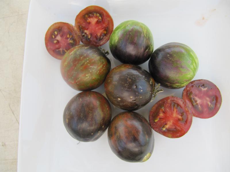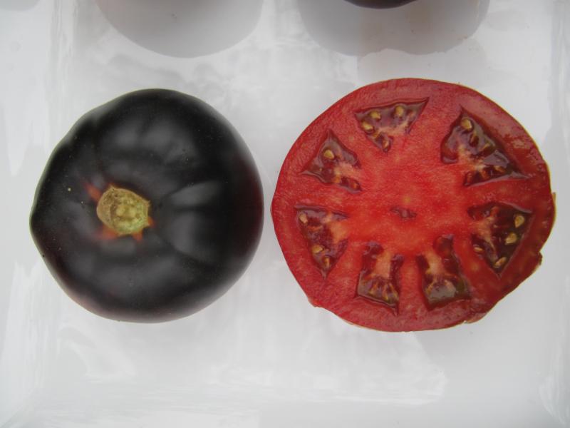 This tomato is the result of an educated guess, a whole lot of luck and years of selecting the best of the best from hundreds of tomato plants over 5 generations. Brad Gates, an organic tomato breeder from Northern California used two of his favorite tomato varieties, Pink Berkeley Tie-Dye and Indigo Apple to make a cross. Several great offspring appeared from the cross, however on in particular really stood out. A dark, meaty, very rich fleshed tomato with extreme anthocyanin (same antioxidant in blueberries and blackberries) expression. So dark that some tomatoes turn solid black. This is the darkest tomato we know of and is likely a nutritional powerhouse as anthocyanin can be seen forming in the flesh for the tomato under the smooth black skin. Flavor potential is excellent. Rich, smooth and savory with earthy tones. Dave Kaiser, tomato junkie from Baker Creek tasted it at the 2015 National Heirloom Exposition and proclaimed it as the BEST tomato he had ever eaten. This is a mid-late season variety that ripens a little slow but is worth the wait. The unripe, indigo colored fruits will dazzle your garden. This variety has a good ability to hang ripe on the vine longer than most and has excellent post harvest storage ability. It appears this tomato does well with a bit of aging at room temperature. Some were tested for flavor at one, two and three weeks after sitting on the counter with great results. Flavor increased and flesh is very slow to break down. Anthocyanin in tomatoes is Sun (UV) activated so the best color is obtained with partial sun or indirect sunlight. Trim leaves on the north side of the plant to allow light to hit fruits. Total sun exposure in hot climates is not recommended, partial shading from leaves is best. Purchase here: http://shop.wildboarfarms.com/BLACK-BEAUTY-NEW-RELEASE-BLACKBEAUTY.htm