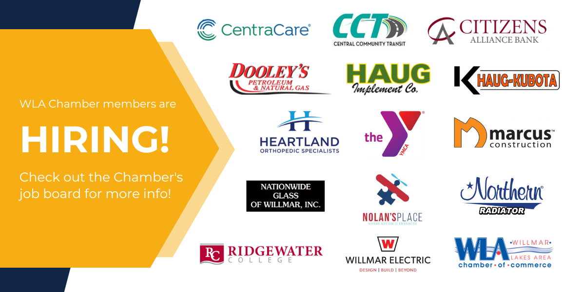 Are you hiring? Don't forget to login to ChamberMaster to post your openings on the Chamber Job Board! Job postings will be shared weekly in the e-newsletter that reaches over 1,500 people. Please contact the Chamber if you have any questions at chamber@willmarareachamber.com or (320) 235-0300.