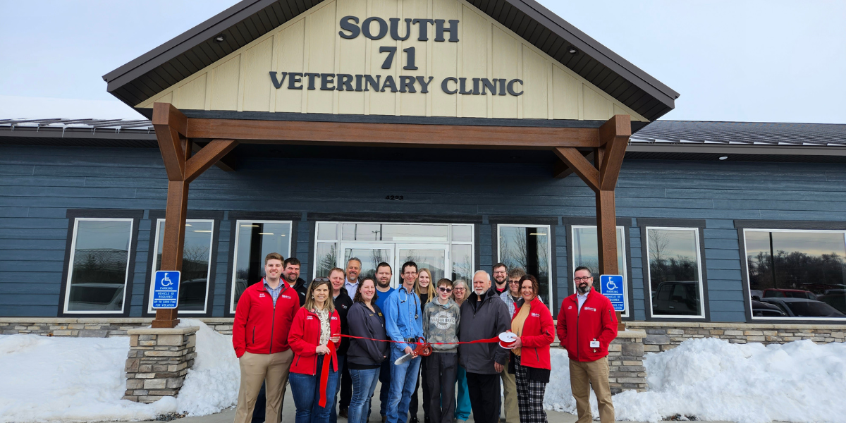 Congratulations to Dr. Ryan and Jess Tollefsrud and their team at South 71 Veterinary Clinic & Supplies on their impressive new clinic designed and meticulously built by TerWisscha Construction, Inc. The new clinic is located directly behind their former location and is nearly three times as big. Dr. Ryan and his compassionate team of 25 staff provide accessible and comprehensive care to large and small animals as well as boarding. Click the link below to view their new website and see more pictures of the beautiful clinic. Pictured are members of the TerWisscha Construction, Inc. project management team, South 71 Veterinary Clinic staff, City of Willmar Mayor Doug Reese, and Chamber Ambassadors Sam Quam (Bethesda), Dawn Lippert (Mainstream Boutique), Julie Anderson (Kensington Insurance), and Ken Quist (Quist Wealth Management). | |
