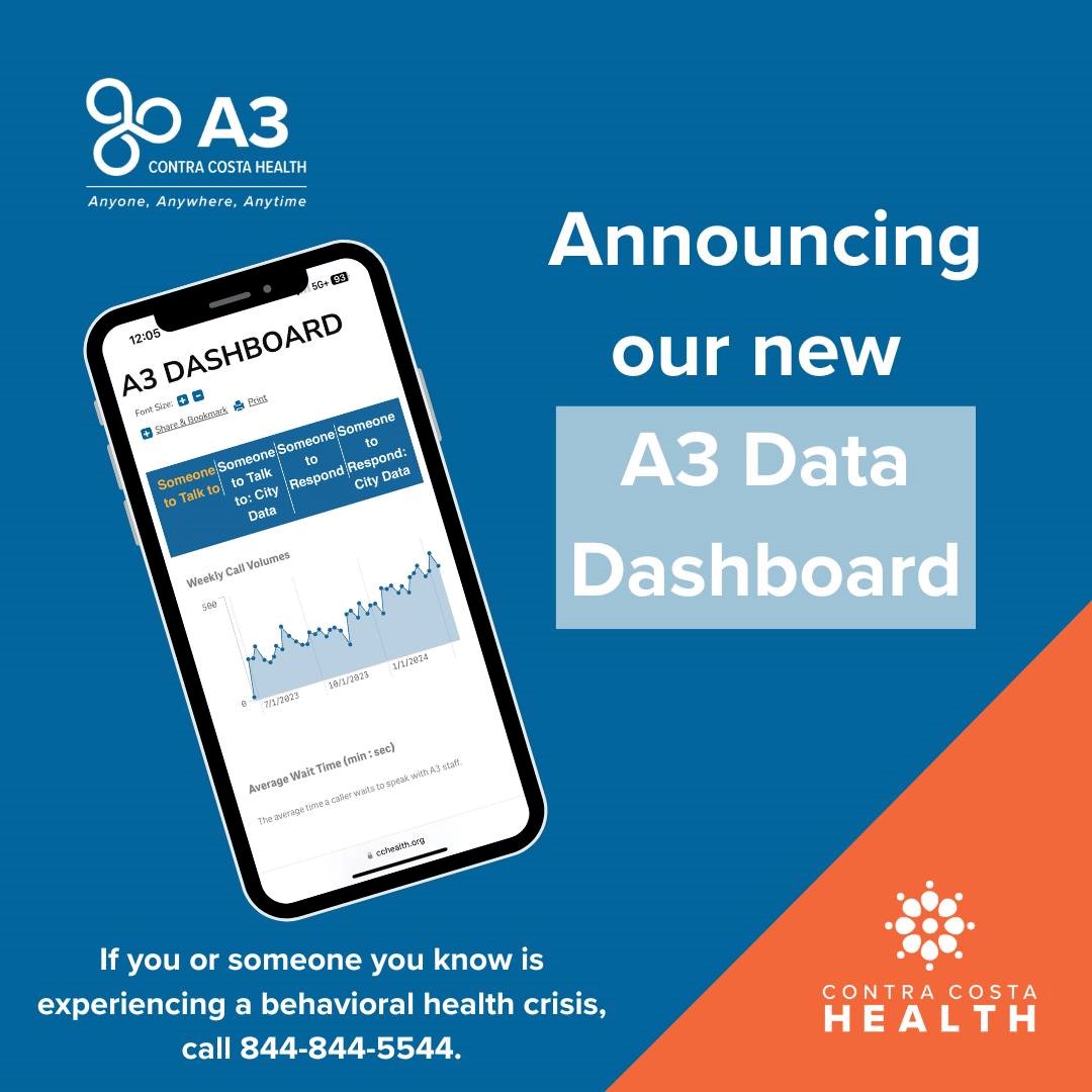 Contra Costa Health recently unveiled its new A3 data dashboard. A3 provides timely and appropriate mental and behavioral health crisis services to anyone, anywhere, at anytime in the county.