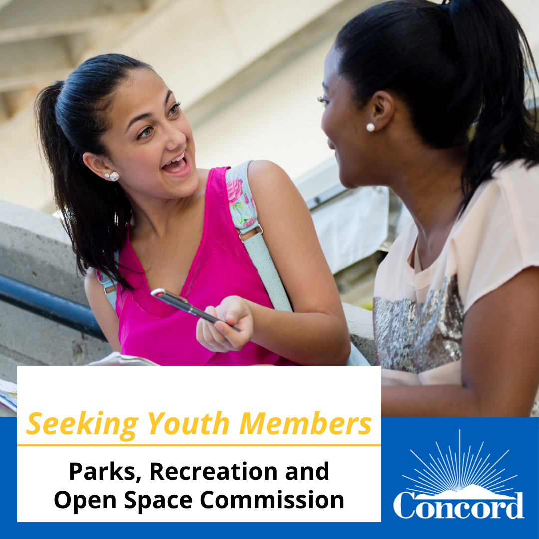 At its May 7 meeting, the Concord City Council announced a recruitment to fill two youth Member positions on the Parks, Recreation, and Open Space Commission for a one-year term, effective September 1, 2024, and ending June 30, 2025. The deadline for applications to the City Clerk is Friday, June 7, at 5 p.m.
