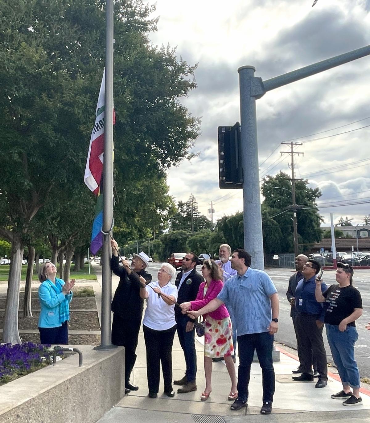 In honor of Pride month, Concord Mayor Edi Birsan, County Supervisor Ken Carlson, and Rainbow Community Center Board President Valerie Crowell, raised the Progress Pride flag at City Hall on Monday, June 3.