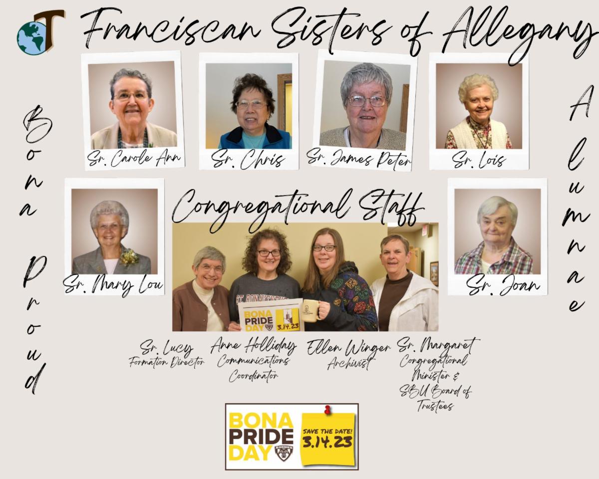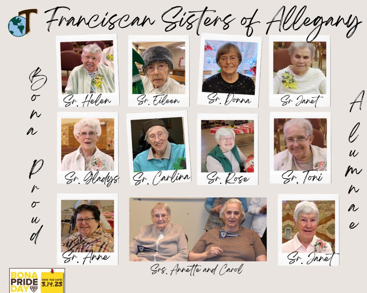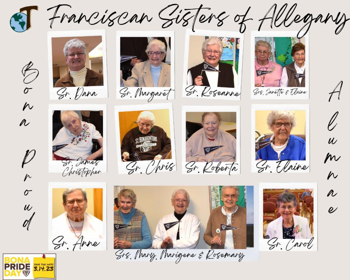 Lindsay Retchless, St. Bonaventure’s Director of Alumni Engagement, said, “Receiving the sisters’ Bona Pride photo collages was heartwarming. The sisters are an essential part of the Bona Family and seeing them share their Bona pride made the day extra special!”