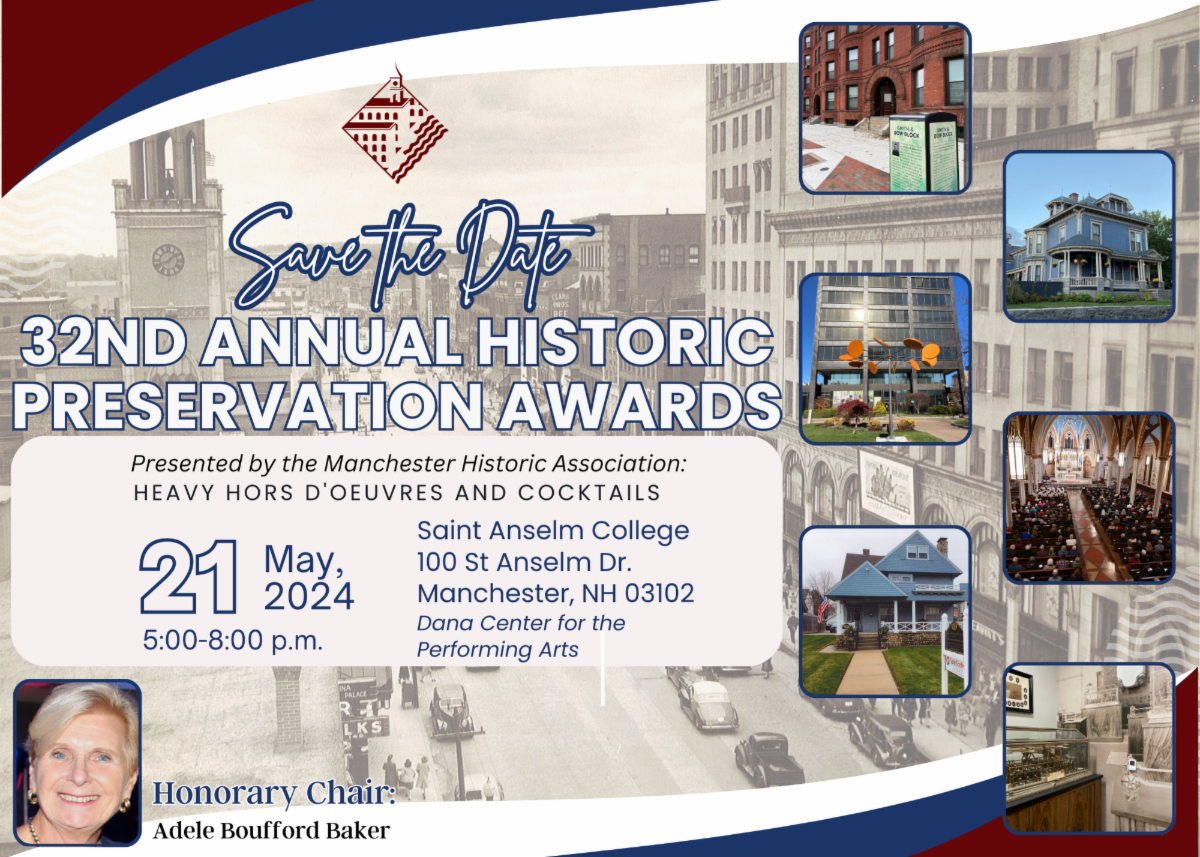 The 32nd Annual Historic Preservation Awards will be held on May 21 at the Dana Center for the Performing Arts at Saint Anselm College.