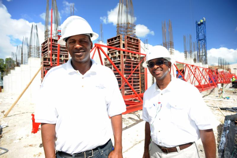 Pictured left Ario Lundy in front of Island Living Apartments during construction.