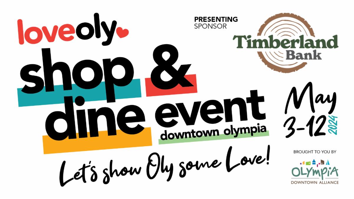 Timberland Bank again presents Downtown Olympia's Shop & Dine Promotion 2024! As in the past, this promotion will allow patrons to download a complimentary passport on the LoveOly Olympia Downtown Alliance website or pick one up at participating businesses. For every $10 purchase, patrons receive a sticker on the passport. Once five stickers are collected, the passport can be redeemed for Love Oly swag.