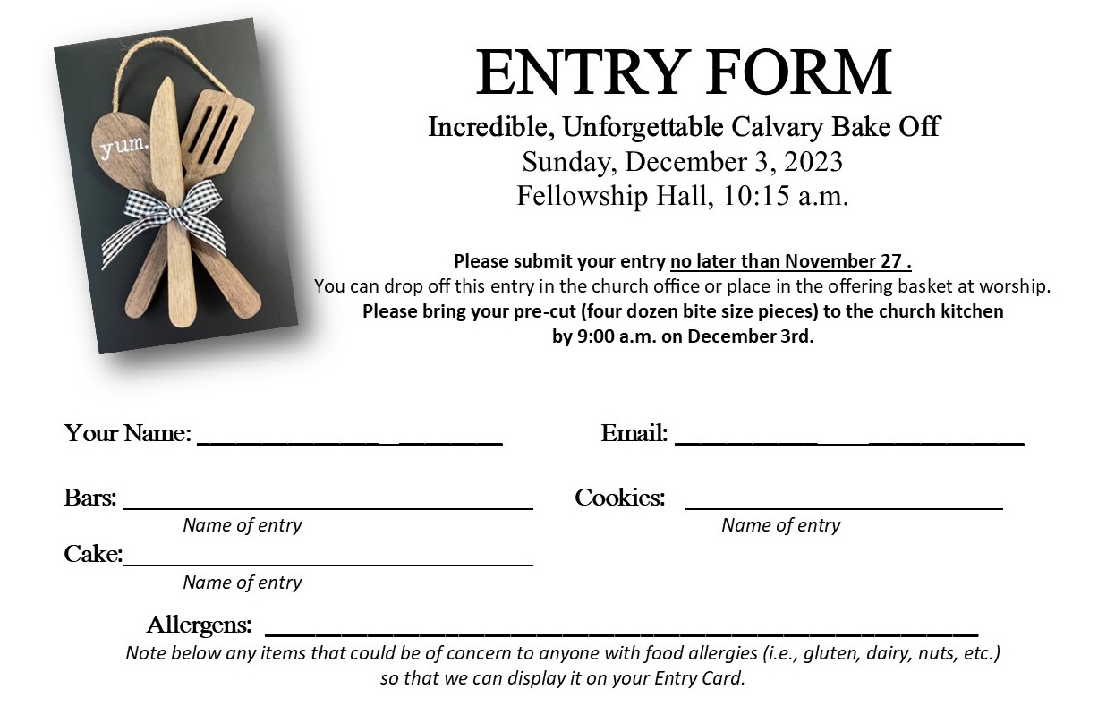 The Incredible, Unforgettable Calvary Bake Off! | |