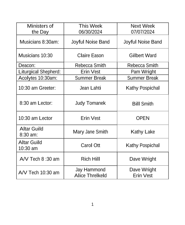 - Heard about the beginning of a staff review process that is being conducted with help from parish member Mike Ferzely.