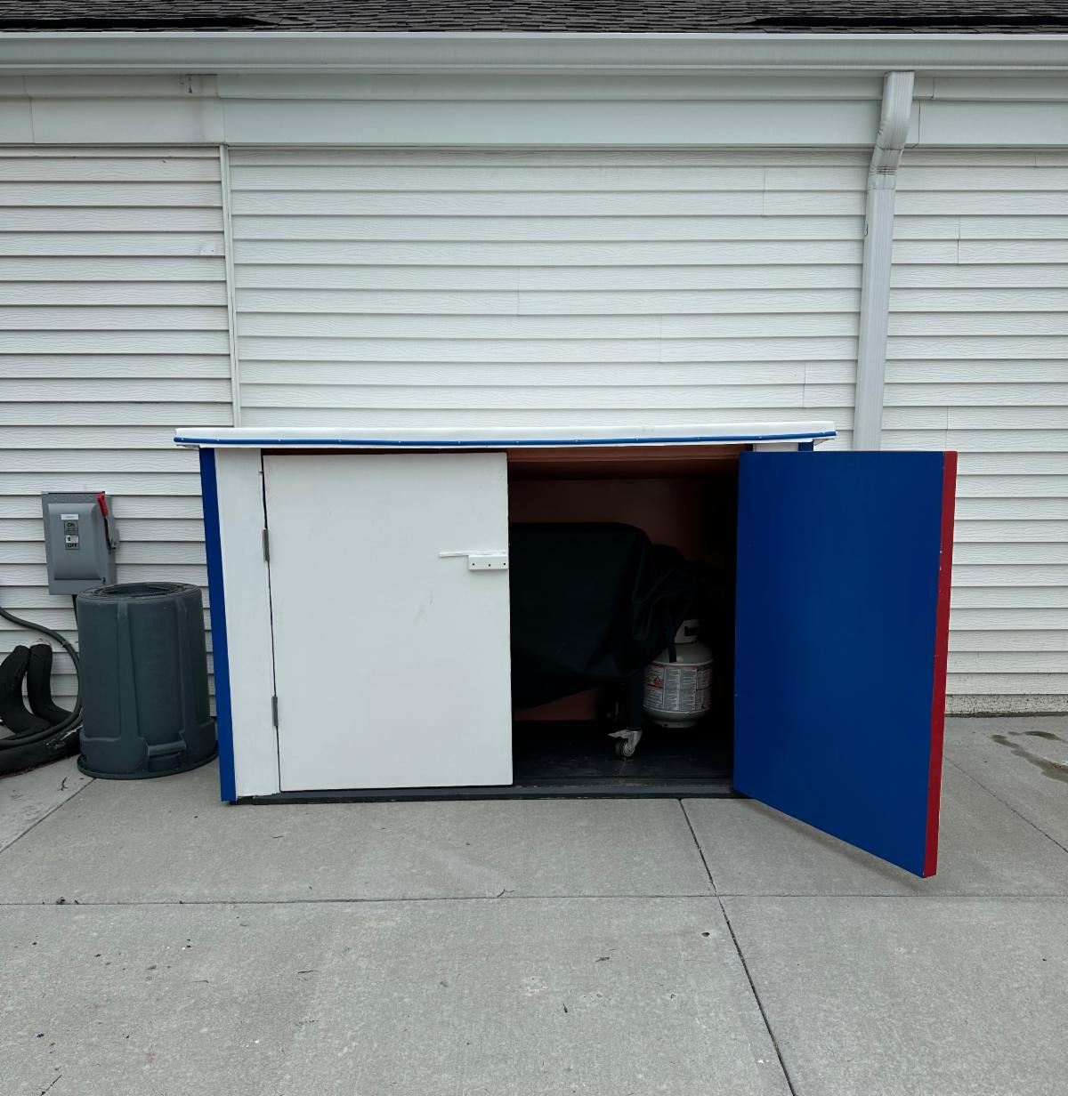 Special thanks goes out to Mike Ehinger, Church Junior Warden for construction of the new storage house for the church's outdoor grill. Mike was asked to construct a structure to protect the grill and and using all his constructed talents, delivered. The house will have doors in the front so the grill can be removed for cooking.