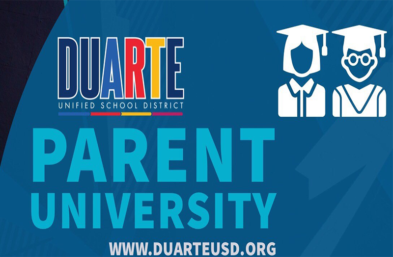 Attend the Parent University Workshop on Wednesday, September 25. The location is Duarte High School. D'Veal Family & Youth Services will be presenting this session on mental health. All parents in attendance will receive free dinner and chance to win raffle prizes. Childcare will be provided.