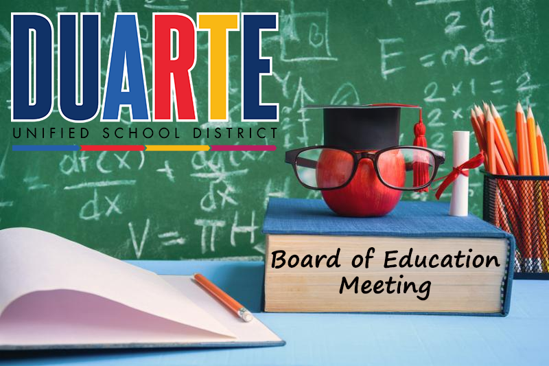 A Regular Meeting of the Board of Education will take place Thursday, September 19, at 7:00 p.m. in the Duarte Community Center. Once posted, find the agenda