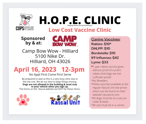 *3-yr Rabies must provide proof of previous Rabies vaccine administered by a licensed vet