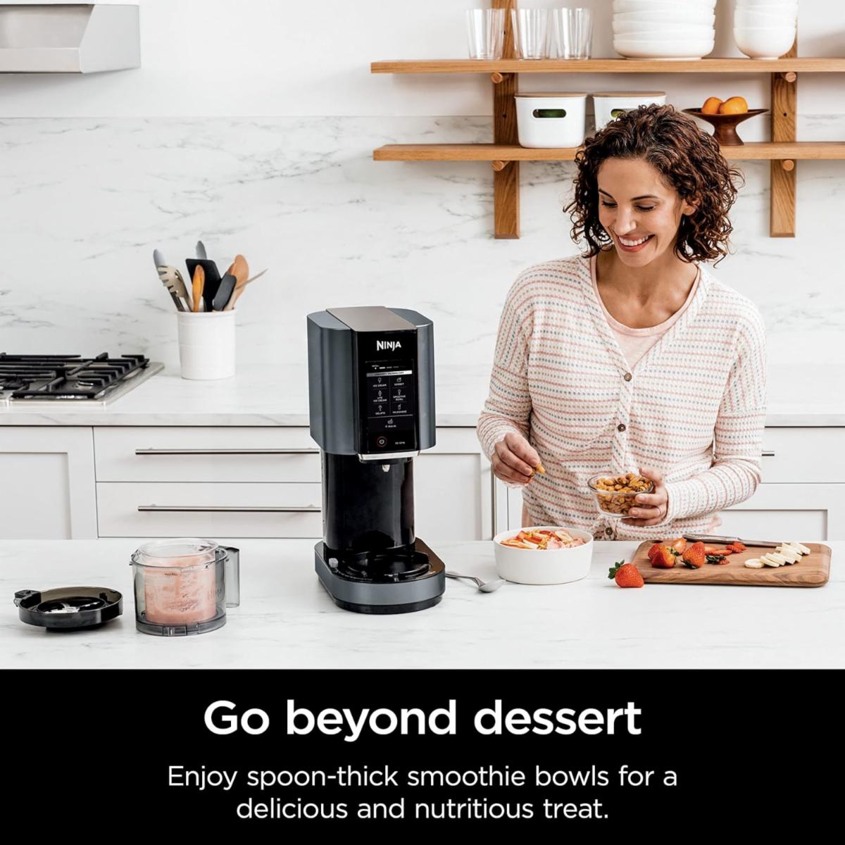 Ninja NC299AMZ CREAMi Ice Cream Maker, for Gelato, Mix-ins, Milkshakes, Sorbet, Smoothie Bowls & More, 7 One-Touch Programs, with (1) Pint Container & Lid, Compact Size, Perfect for Kids, Matte Black