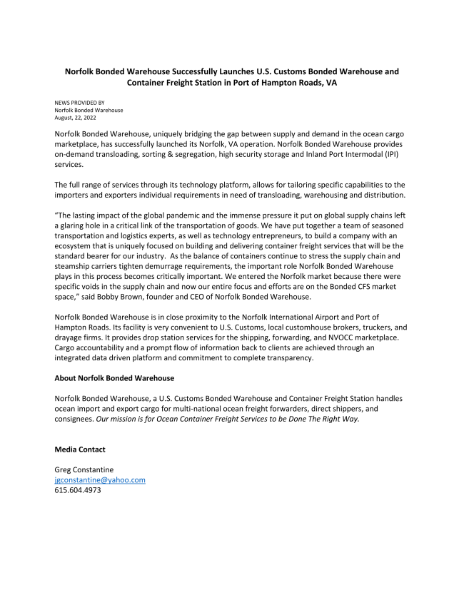 Norfolk Bonded Warehouse, LLC continues to invest back into the business adding specialty loading tools!