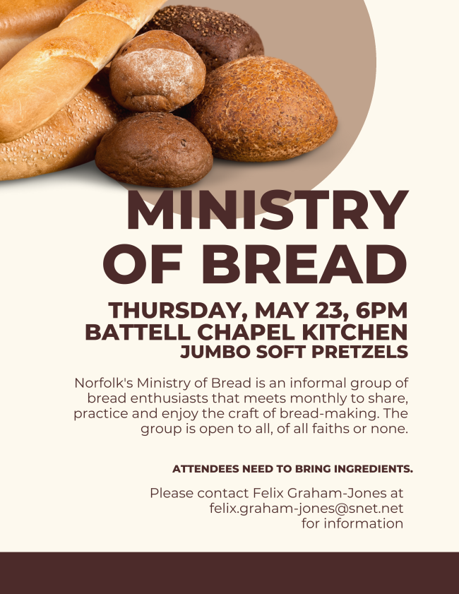 Norfolk's Ministry of Bread is an informal group of bread enthusiasts that meets monthly to share, practice and enjoy the craft of bread-making.
