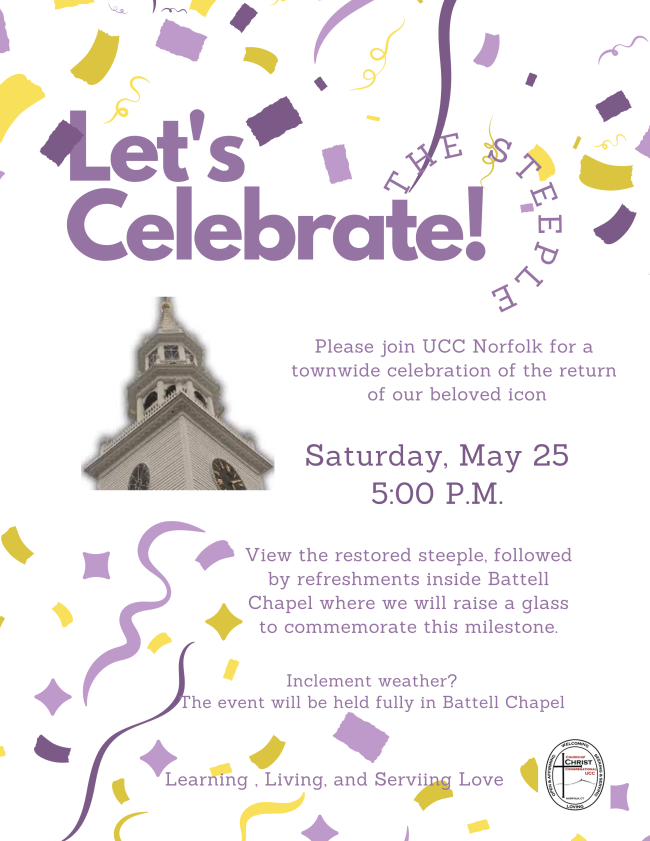 Please join UCC Norfolk for a townwide celebration of the return of this beloved icon.