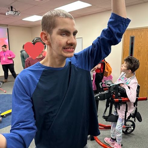 At New Horizons, we love to do fun group activities! Every Monday, our community room is bustling with students participating in MoCo (Movement for Communication Group). This group is facilitated by speech and occupational therapy, with occasional appearances from physical therapy or our orientation and mobility specialist.