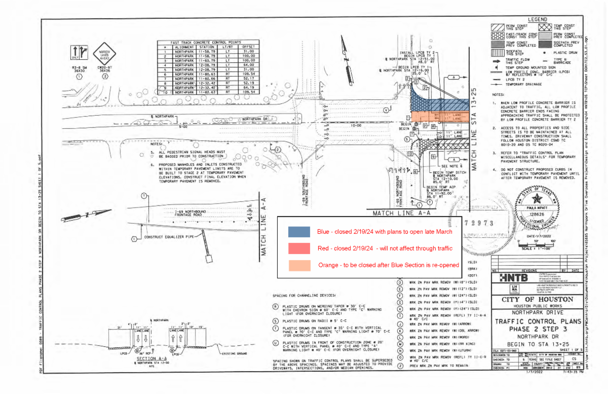 HOUSTON - Council Member Flickinger would like to make Kingwood residents aware that Beginning February 19th, Lake Houston Redevelopment Authority’s (LHRA’s) contractor, Harper Brothers Construction will be closing the right two lanes of westbound traffic near the Northpark/I-69 intersection. For this phase of work, the contractor will be installing new storm sewer pipes and inlets along with a new concrete roadway.
