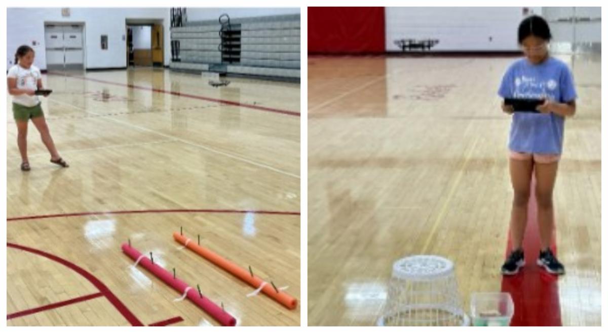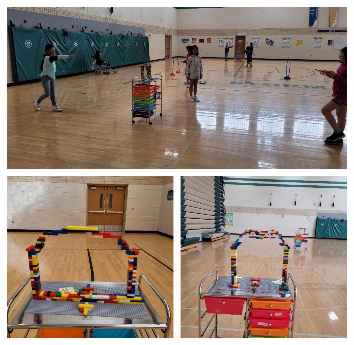 around the classroom. Their final project was to create an obstacle, tall and wide enough, for the drone to fly through. The gym was the setting for students to be challenged to fly through different obstacles. Many breakdowns happened, but the students loved it.
