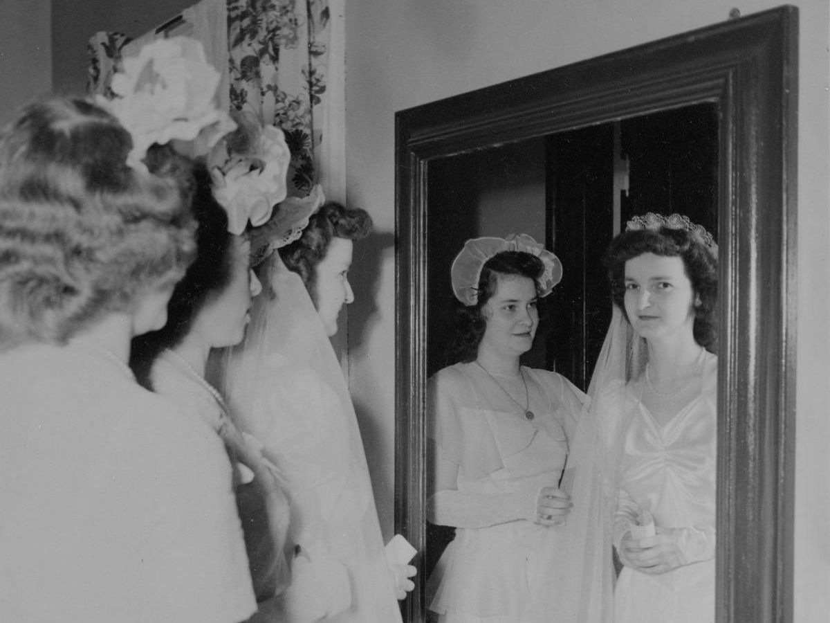 Woodbury and Lena's daughter, Claire Morrill, lived at the Mansion with her parents. In 1947, she held her wedding reception in the house at the invitation of the Mansion's first curator, Dr. William Holmes. Lena Morrill was an Irish immigrant, and Claire's wedding ceremony was held at nearby St. Dominic's Church, today home to the Maine Irish Heritage Center. With her husband, Henry O. Dyson, Claire raised three children. The youngest, Paul, recently visited Victoria Mansion with his wife Dee, and graciously shared stories about his mother. He also generously donated family photographs documenting Claire's wedding, and letters from her soon-to-be husband when he was overseas during World War II. Claire herself served in the United States Naval Women's Reserve (WAVES) along with some of her friends.