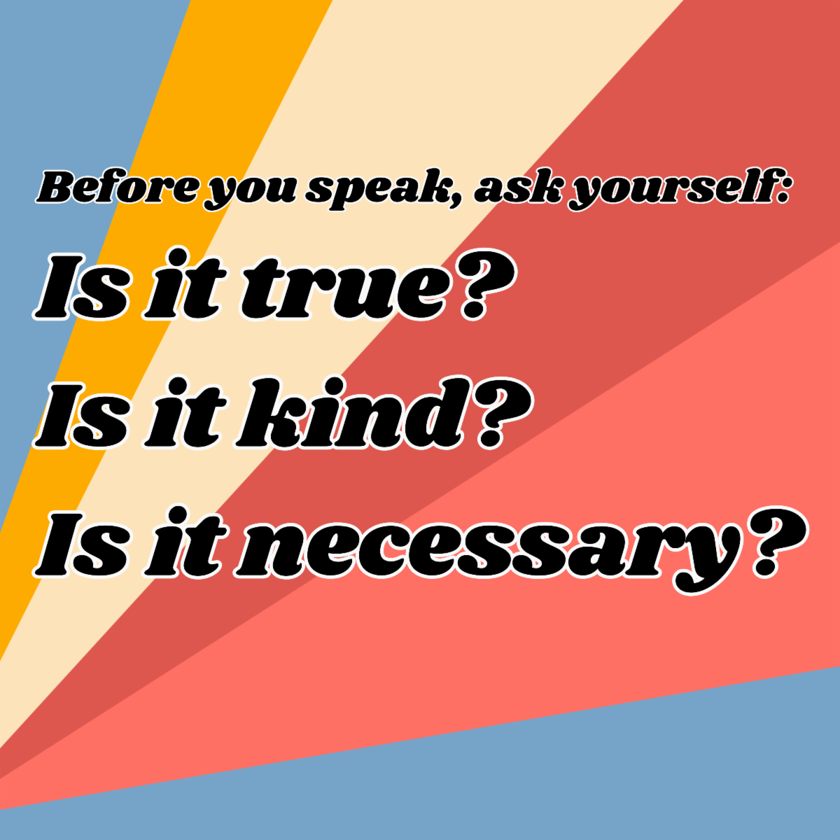 ¡Energía positiva en todas partes! ¡Nuestras palabras importan, y la energía positiva es contagiosa! Antes de hablar, preguntémonos: "¿Es verdad? ¿Es amable? ¿Es necesario?" Digo esto todos los días durante los anuncios y se colocan carteles en toda la escuela como recordatorios.